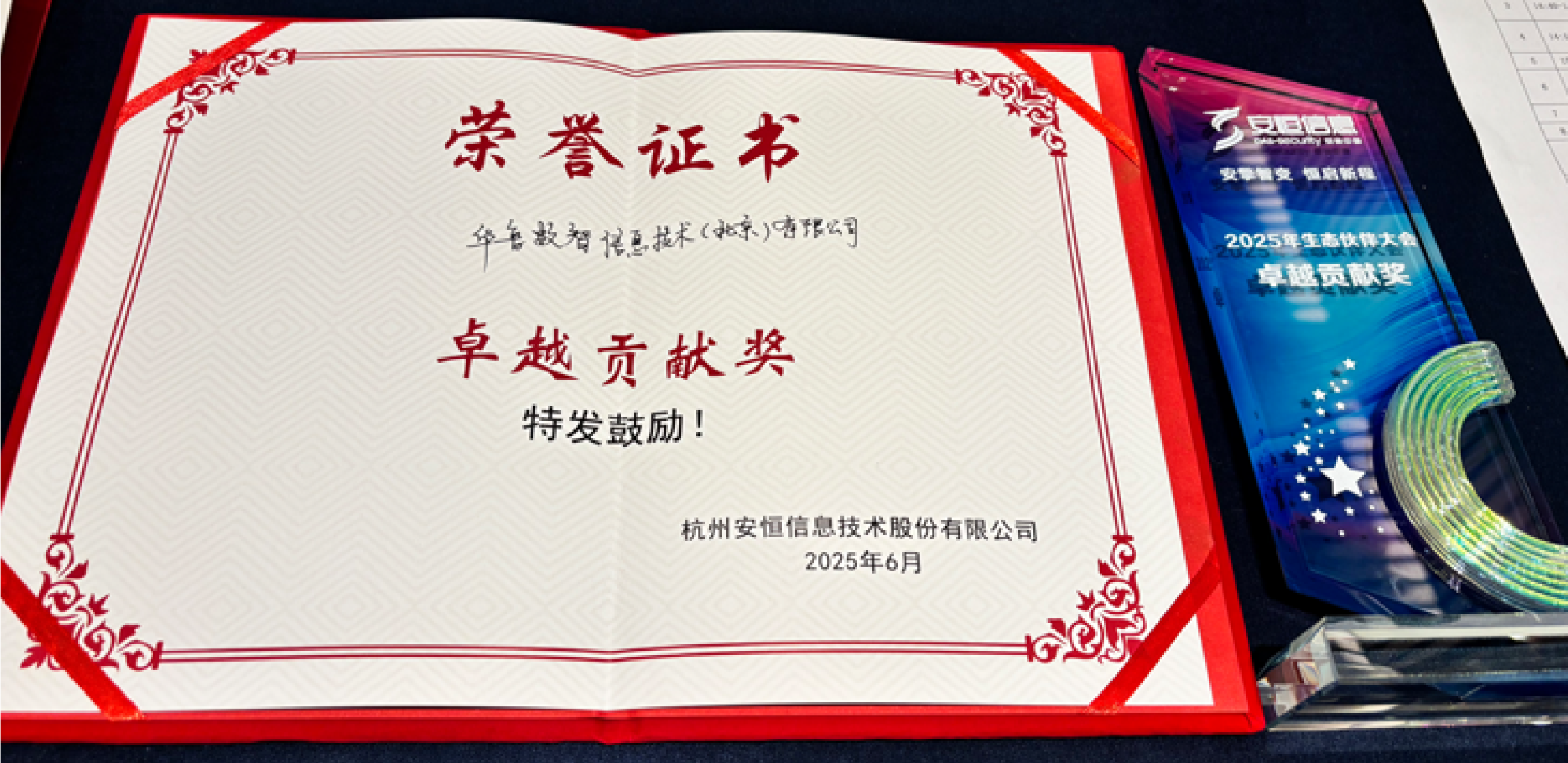 2025年6月20日,泉城济南群英荟萃。安恒信息2025年生态伙伴大会在济南召开,华鲁数智信息技术(北京)有限公司受邀参会,并凭借在网络安全生态建设中的突出表现,荣获“卓越贡献奖”。